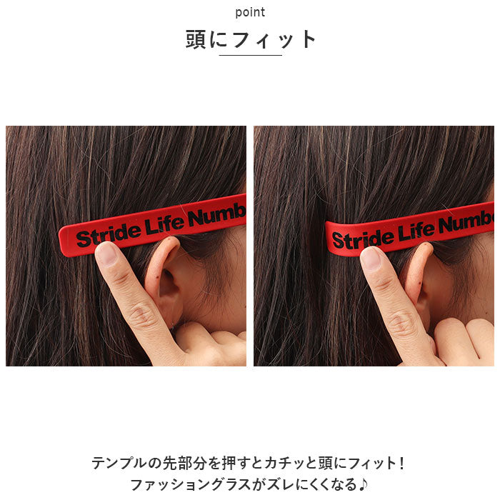 ・テンプルの先部分を押すとカチッと頭にフィット!ファッショングラスがズレにくくなる♪