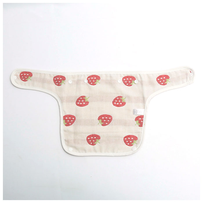 ・使い方は、よだれかけの左右を、ベビーキャリーのショルダー部分に通してスナップボタンで留めるだけ。