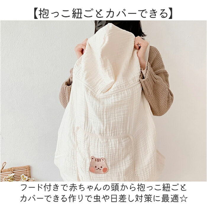 ・フード付きで赤ちゃんの頭から抱っこ紐ごとカバーできる作りで虫や日差し対策に最適☆