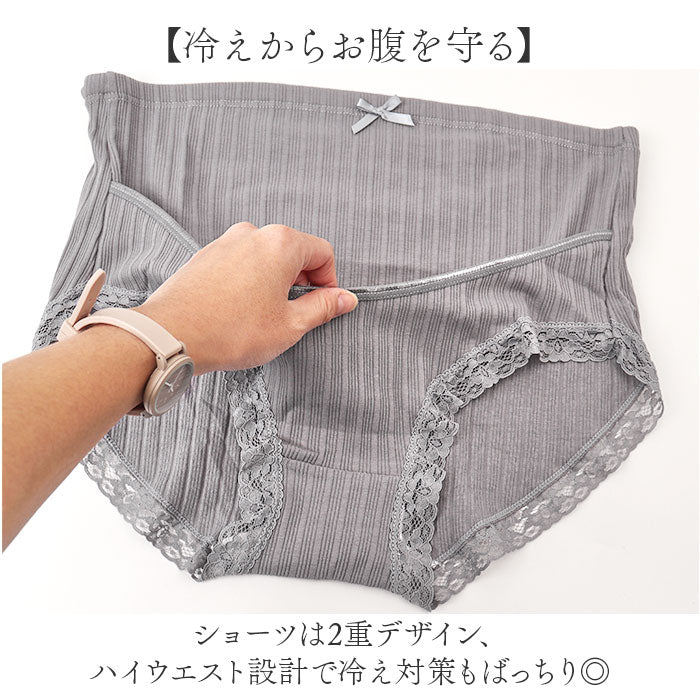 ・ショーツは2重デザイン、ハイウエスト設計で冷え対策もばっちり◎
