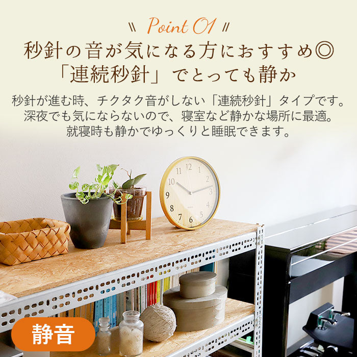 ・針が連続してスムーズに動くから音がしない!秒針の音が気になる方におすすめ◎