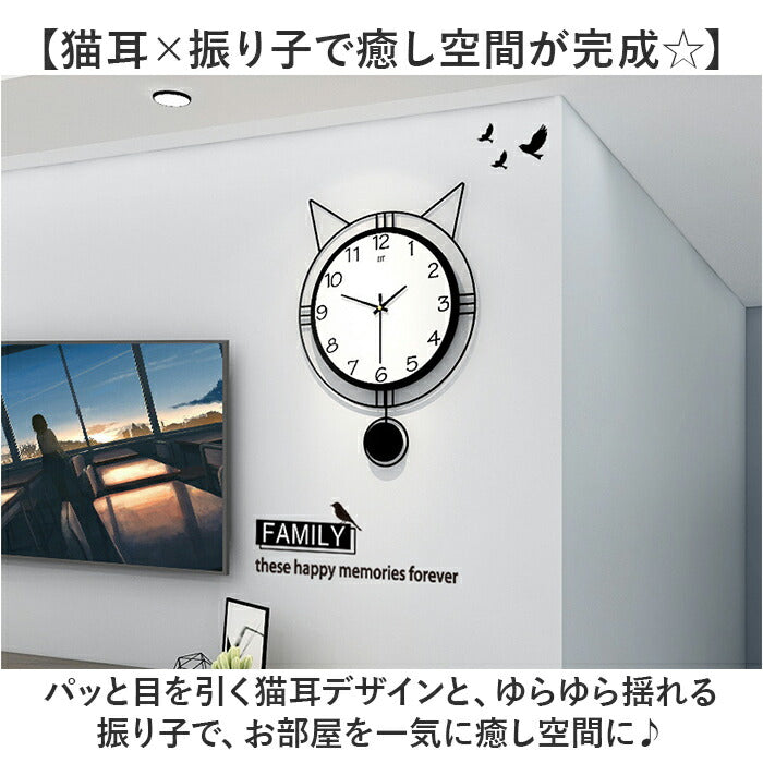 ・パッと目を引く猫耳デザインと、ゆらゆら揺れる振り子で、お部屋を一気に癒し空間に♪
