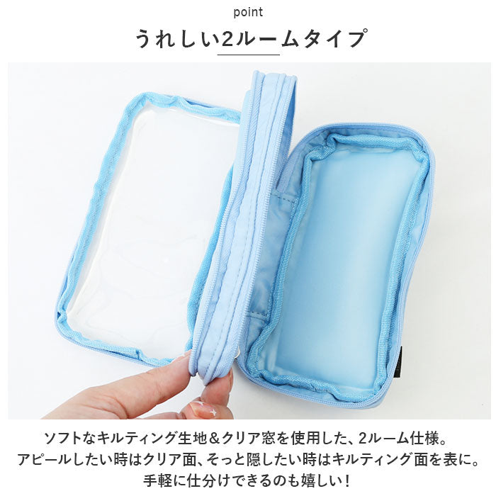 ・ソフトなキルティング生地&クリア窓を使用した、2ルーム仕様。アピールしたい時はクリア面、そっと隠したい時はキルティング面を表に。手軽に仕分けできるのも嬉しい!