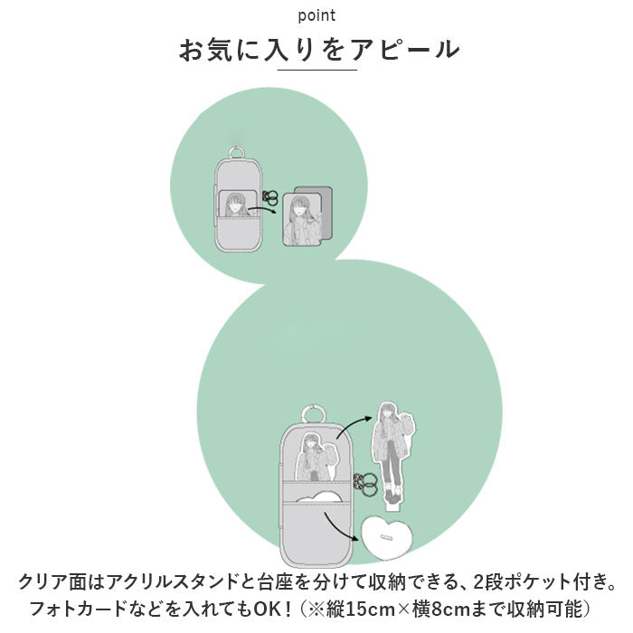 ・クリア面はアクリルスタンドと台座を分けて収納できる、2段ポケット付き。フォトカードなどを入れてもOK!(※縦15cm×横8cmまで収納可能)