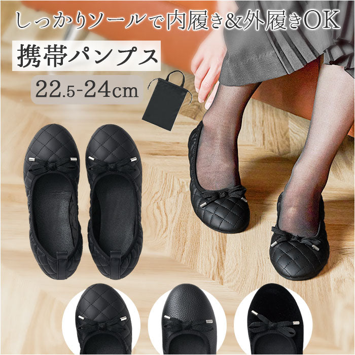 携帯 パンプス レディース 通販 携帯用スリッパ 携帯パンプス 携帯スリッパ スリッパ 外履き 内履き ルームシューズ 婦人靴 袋付き 収納袋付き 女性用 バレエシューズ型 コンパクト 便利