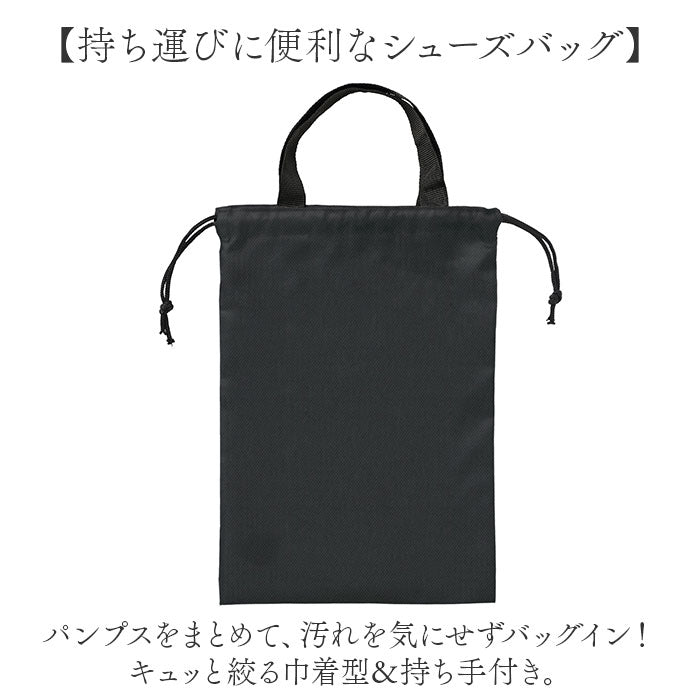 ・パンプスをまとめて、汚れを気にせずバッグイン!キュッと絞る巾着型&持ち手付き。