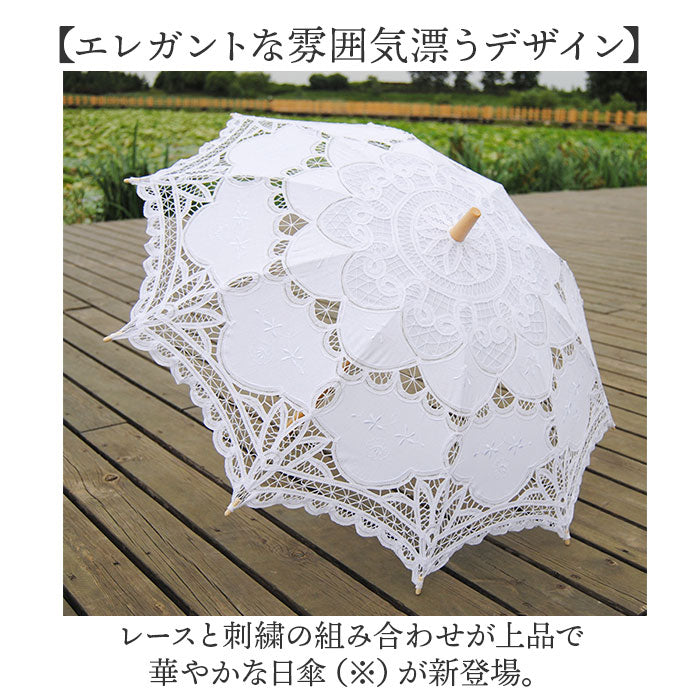 日傘 レース レディース 通販 レース傘 刺繍傘 傘 かさ カサ 踊り傘 日除け 日よけ 装飾 写真撮影 刺しゅう ししゅう 上品 きれいめ 綺麗め 可愛い かわいい 婦人 女性 花嫁 ブライダル