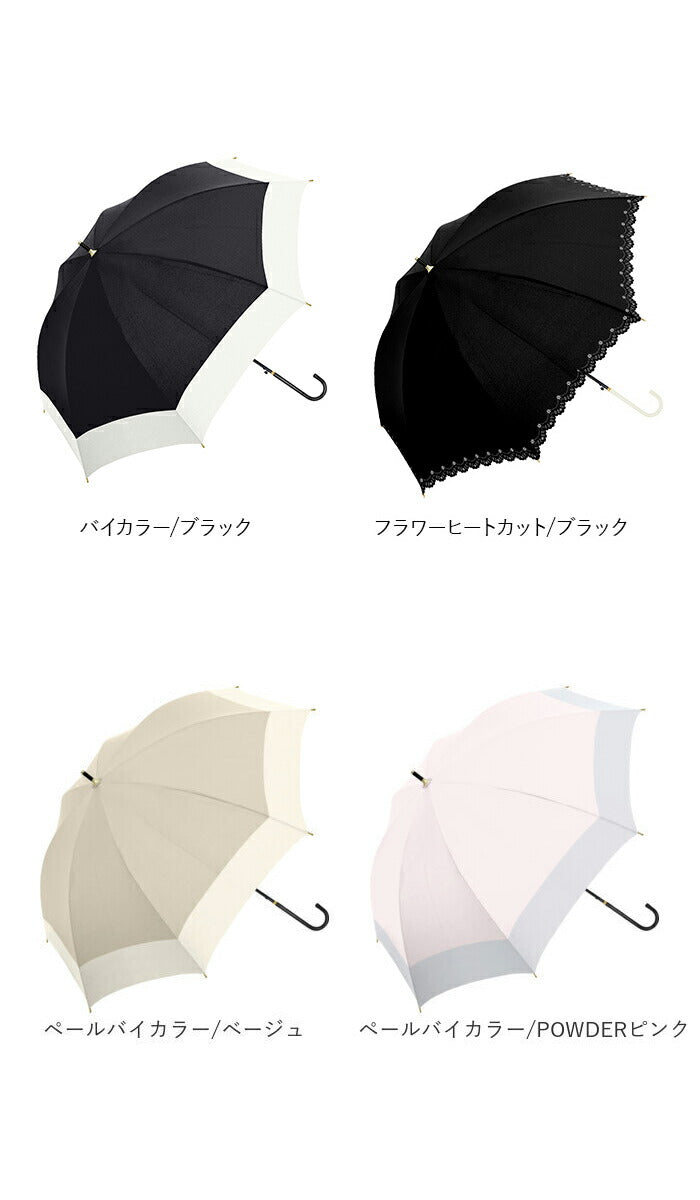 ・落ち着いた色調の生地にレースやフラワー柄をちりばめたシンプルで上品な柄をラインナップ。傘生地フチにレースカット加工を施したエレガントヒートカットシリーズもオススメ。