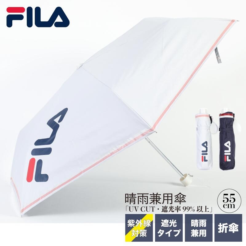 日傘 晴雨兼用 折りたたみ UVカット 遮光 通販 レディース メンズ おしゃれ UVカット率99%以上 遮光率99%以上 ブランド FILA フィラ 10002819 男女兼用 雨晴兼用 無地ロゴ 折傘 55cm 6本骨 通勤 通学 傘 雨傘 婦人 紳士 女性用 ファッション小物