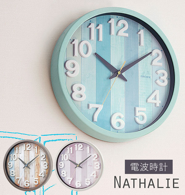 時計 壁掛け オシャレ 通販 電波時計 おしゃれ リゾート 静か かわいい 子供部屋 インテリア 新築祝い 新生活 プレゼント パステルカラー 木目調 寝室 ウォールクロック リムレックス ナタリー