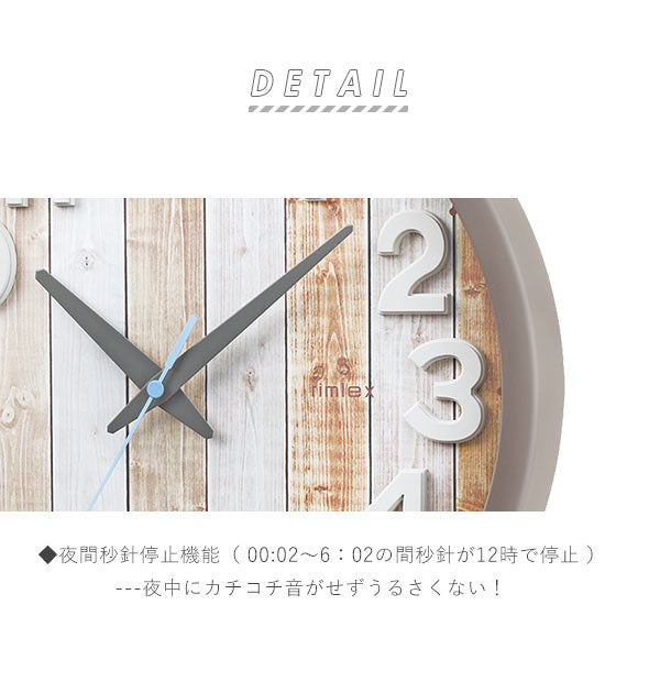 アンティークな雰囲気を持った電波時計 ナタリーです。ウッド調のプリントと、立体的な文字盤が特徴的な掛け時計。アンティークに見えますが機能性が高く、夜間秒針停止機能で夜中も安心。電波時計なので時刻設定が楽々!シンプルなデザインがお部屋のインテリアと調和するおしゃれな掛け時計です。