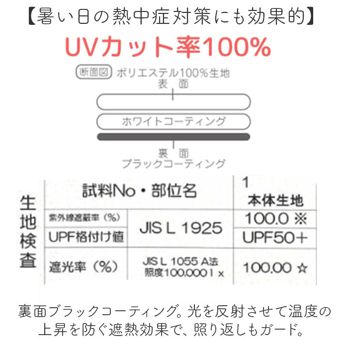 ・遮光率、UVカット率100%、UPF50+!光を通しにくく、気になる紫外線をカット。