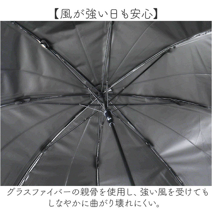 ・グラスファイバーの親骨を使用し、強い風を受けてもしなやかに曲がり壊れにくい。