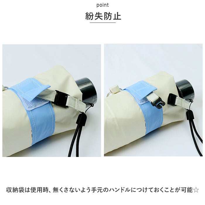 ・傘本体と収納袋のロゴプリント部分は紫外線を浴びると色が変わる仕様!日傘を差すタイミングを確認できるのがうれしいポイント♪
