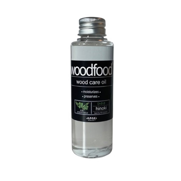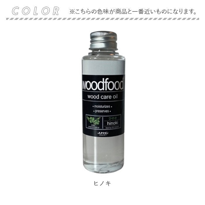 木に塗る オイル 120ml 通販 日本製 木材 木材用 ヒノキの香り エッセンシャルオイル 天然成分 woodfood ウッドフード ウッドケアオイル 国産 木製品用 家具用 竹製品 食器 おもちゃ
