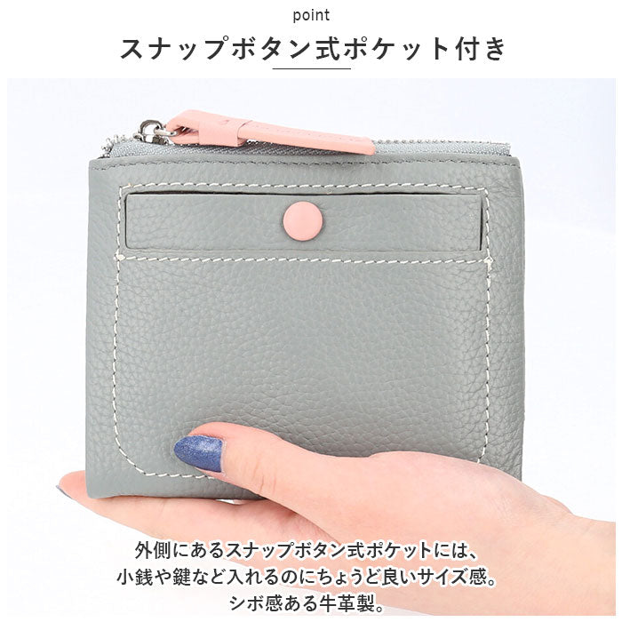 ・シボ感ある牛革製。ファスナー用のストラップとスナップボタンの色が、アクセントカラーに♪