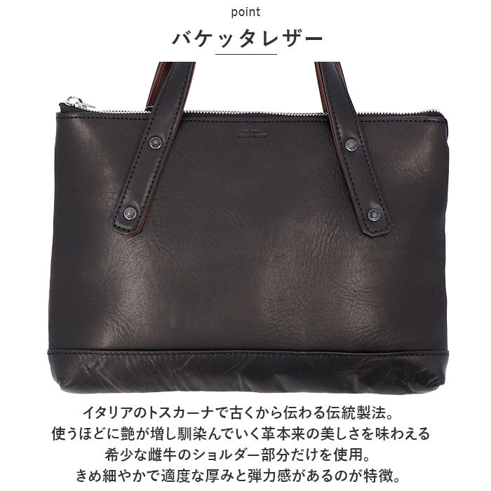 ・イタリアのトスカーナで古くから伝わる伝統製法。使うほどに艶が増し馴染んでいく革本来の美しさを味わえる希少な雌牛のショルダー部分だけを使用。きめ細やかで適度な厚みと弾力感があるのが特徴。