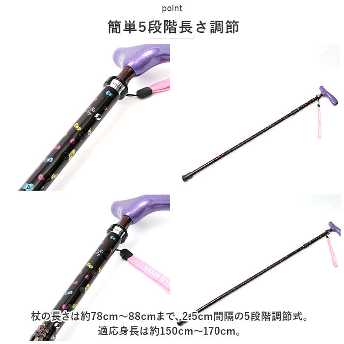 ・杖の長さは約78cm~88cmまで、2.5cm間隔の5段階調節式。適応身長は約150cm~170cm。