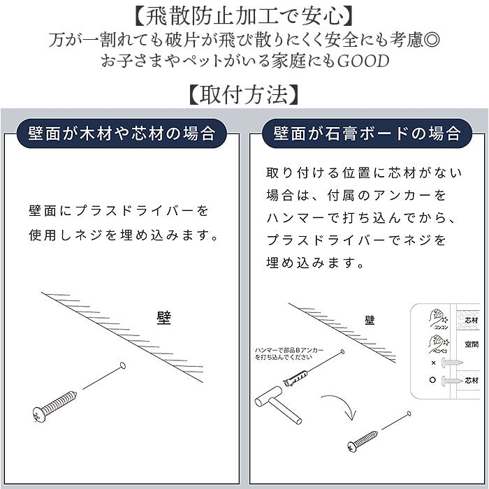 ・デスクやチェスト上の壁に掛けることで、ドレッサーに早変わり♪