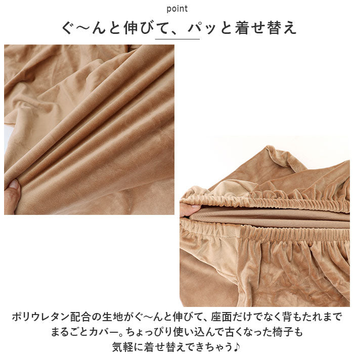 ・すっぽり被せて、お家の椅子を簡単リニューアル!取り付け簡単「椅子カバー」に、リッチな風合いのベルベット調タイプが仲間入り!