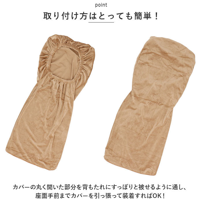 ・カバーの丸く開いた部分を背もたれにすっぽりと被せるように通し、座面手前までカバーを引っ張って装着すればOK!