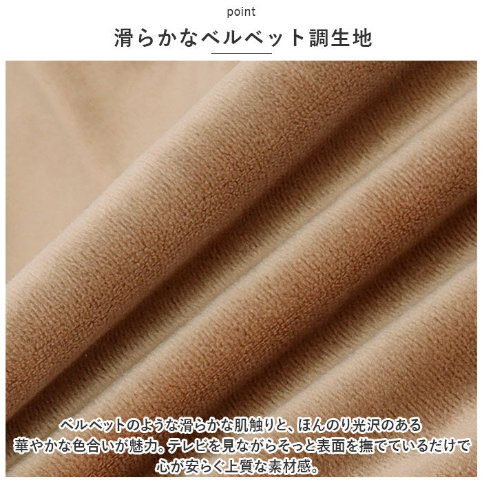 ・ベルベットのような滑らかな肌触りと、ほんのり光沢のある華やかな色合いが魅力。テレビを見ながらそっと表面を撫でているだけで心が安らぐ上質な素材感。