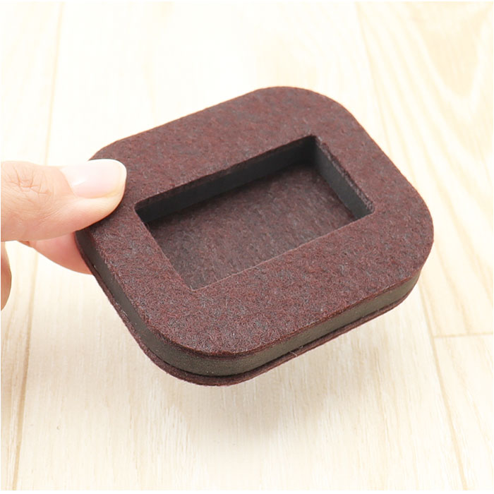 ・厚みのあるフェルト素材のストッパーのくぼみに、キャスターの車輪をふんわりと乗せるだけ!