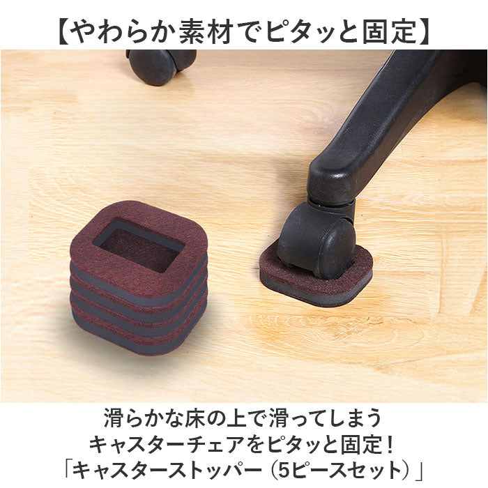 ・滑らかな床の上で滑ってしまうキャスターチェアをピタッと固定!「キャスターストッパー(5ピースセット)」!