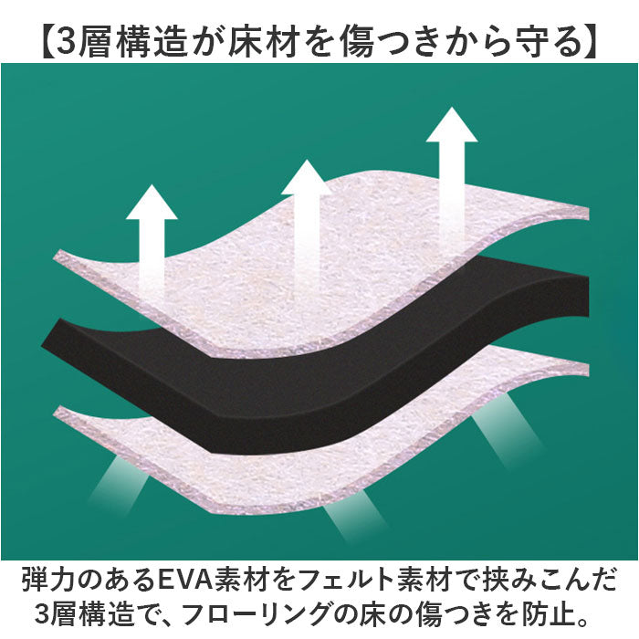 ・弾力のあるEVA素材をフェルト素材で挟みこんだ3層構造で、フローリングの床の傷つきを防止。