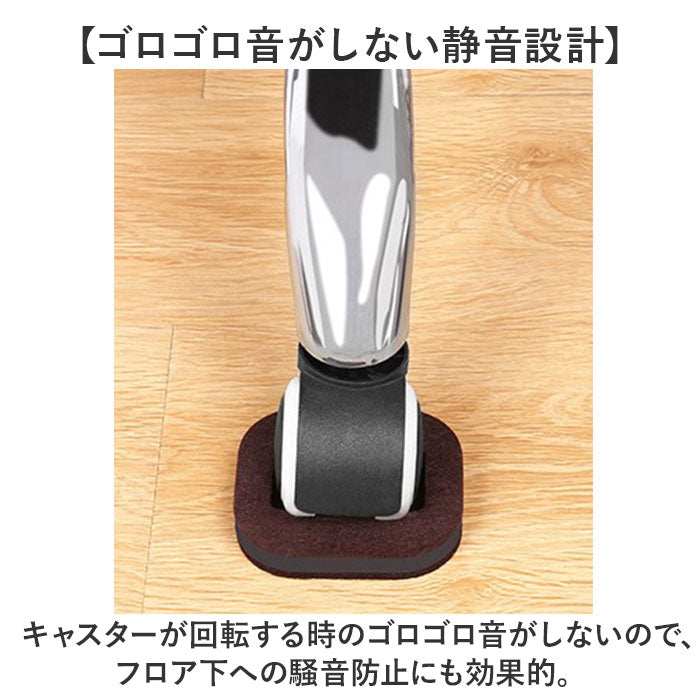 ・キャスターが回転する時のゴロゴロ音がしないので、フロア下への騒音防止にも効果的。