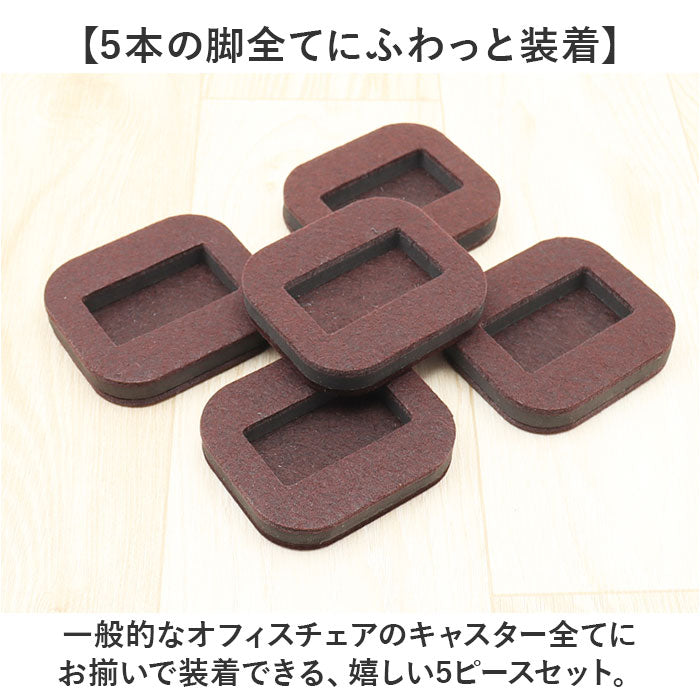 ・一般的なオフィスチェアのキャスター全てにお揃いで装着できる、嬉しい5ピースセット。