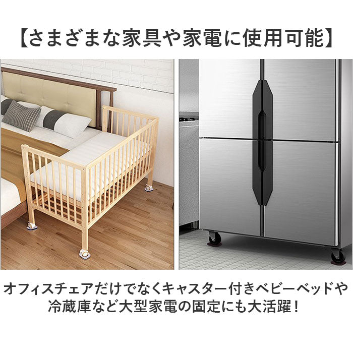 ・オフィスチェアだけでなくキャスター付きベビーベッドや冷蔵庫など大型家電の固定にも大活躍!