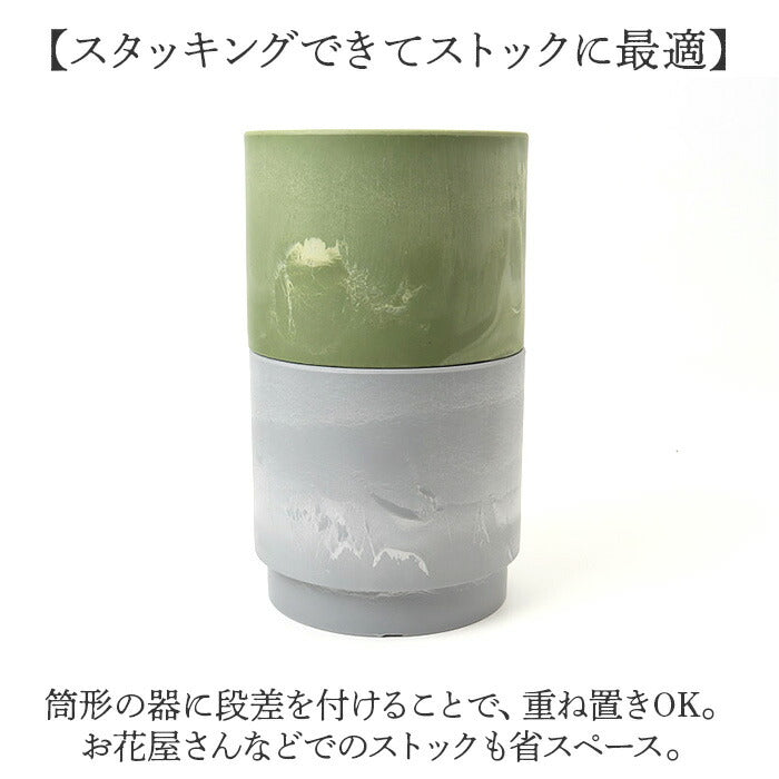 ・筒形の器に段差を付けることで、重ね置きOK。お花屋さんなどでのストックも省スペース。