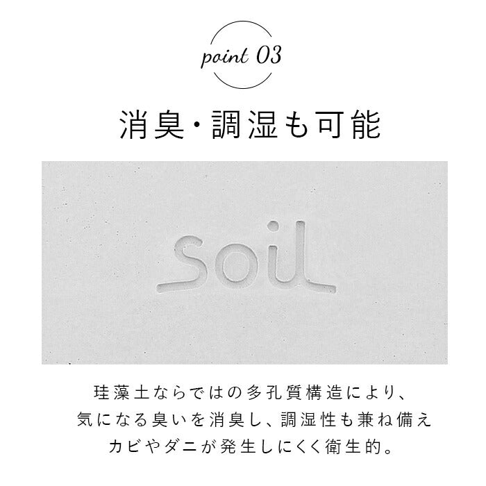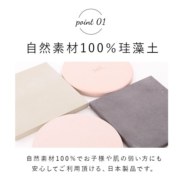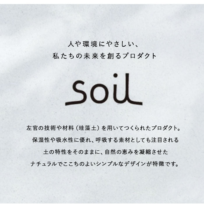 ・保湿性や吸水性に優れ、呼吸する素材、珪藻土(けいそうど)を生かしたプロダクトで注目を集めるsoil(ソイル)。ナチュラルで自然の恵みを生かしたデザインが魅力のブランド。