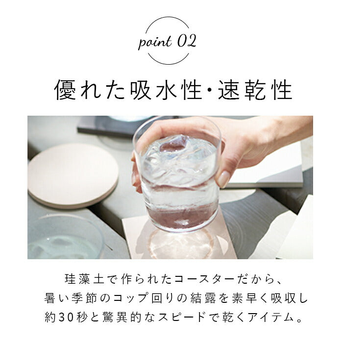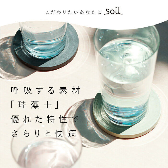 ・優れた吸水性で、冷たいグラスの表面についた水滴を吸い取り、テーブルを濡らさない、soil(ソイル)コースター・サークル&スクエア。