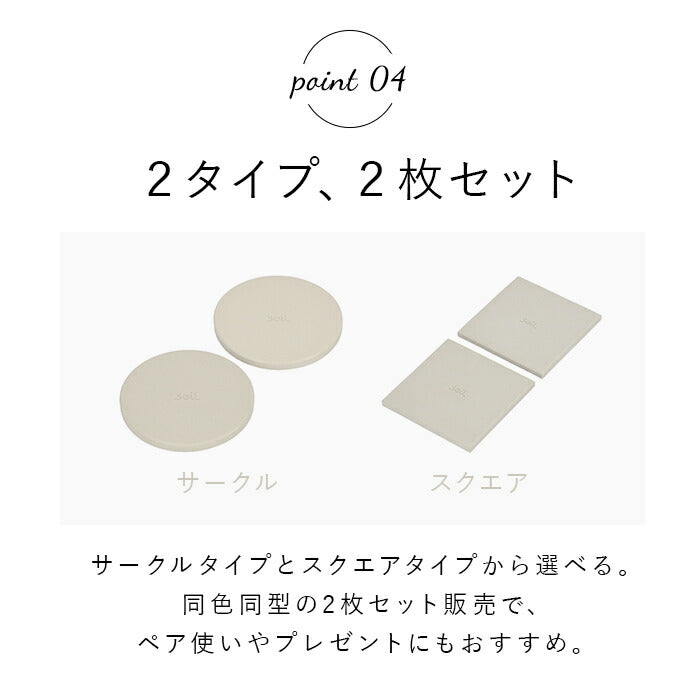 コースター 珪藻土 通販 soil まる しかく 黒 ブラック 白 ホワイト 吸水 速乾 乾燥 ボトル ピッチャー グラススタンド 引越祝い ビアグラス プレゼント 母の日 ギフト カフェ 2枚
