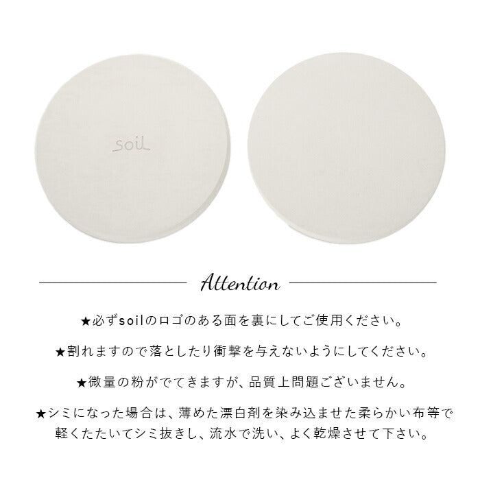 ※珪藻土を主素材として製造しています。素材の性質上、脆弱性があり、使用する際に、落としたりぶつけたりすると割れや欠けが生じる場合がありますので、丁寧にお取り扱いください。