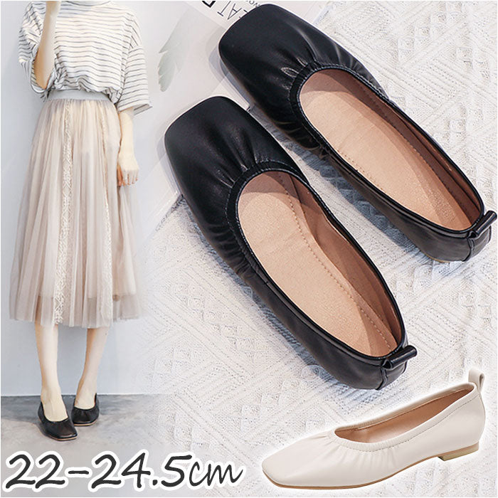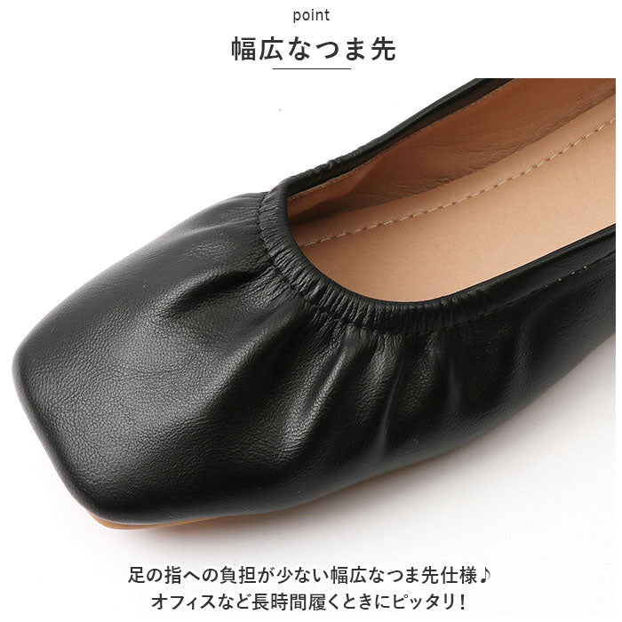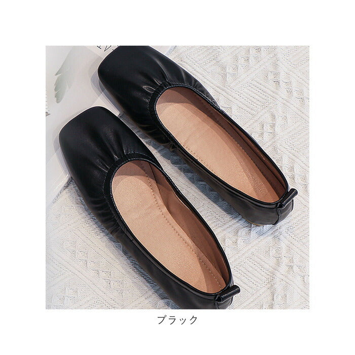 歩きやすい パンプス ローヒール 通販 レディース フラットシューズ フラット シューズ ぺたんこ ソフトギャザー ソフト レザー 柔らかい 痛くない 革 靴 かわいい シンプル しなやか