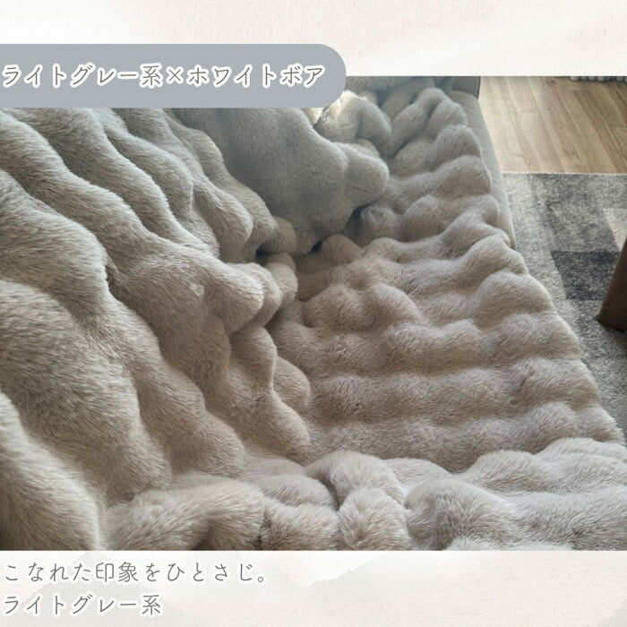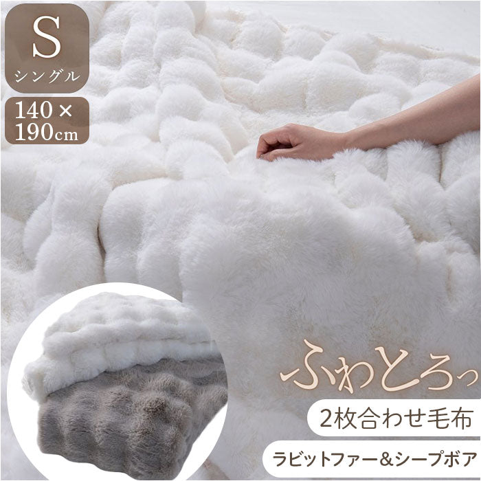 ・ポコポコ立体感がかわいい!ラビットファー&ふわふわシープボアの2枚合わせ毛布