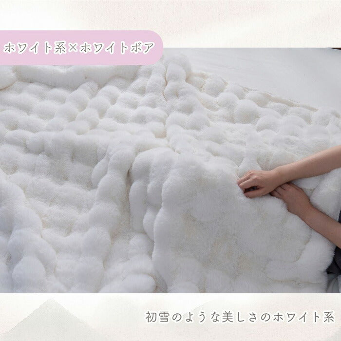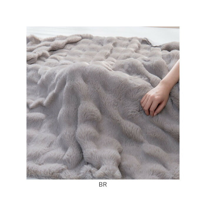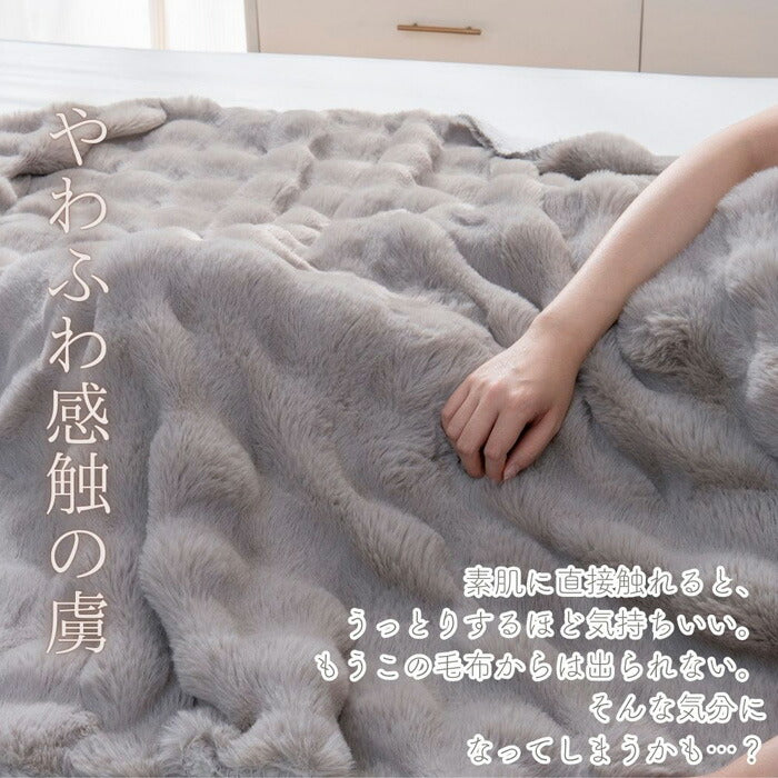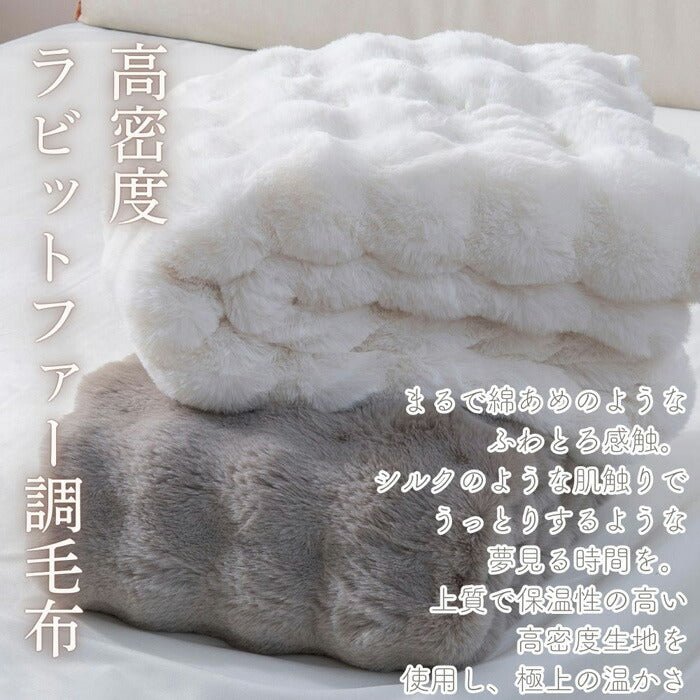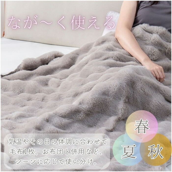 ぽこぽこ立体 2枚合わせラビットファー毛布 シングル
