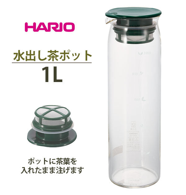 水出しポット ハリオ 通販 水出し茶ポット 茶 緑茶 水出し ポット ボトル 緑茶 耐熱 1000ml 1L ジャグ 麦茶 アイスティー 茶こし 付 食洗機 対応 冷蔵庫 ドアポケット フィルター メッシュ