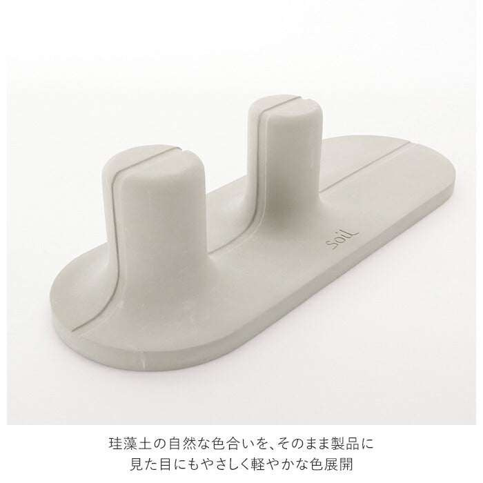 ・soil=「土 」。左官の技術や材料(珪藻土)を用いてつくられたプロダクト。保湿性や吸水性に優れ、呼吸する素材としても注目される土の特性をそのままに、自然の恵みを凝縮させたナチュラルで心地のよいデザインが特徴。 皮膚の弱い方も安心して使用できて、リサイクル性にも富んでいる。
