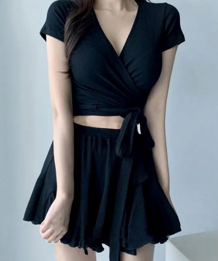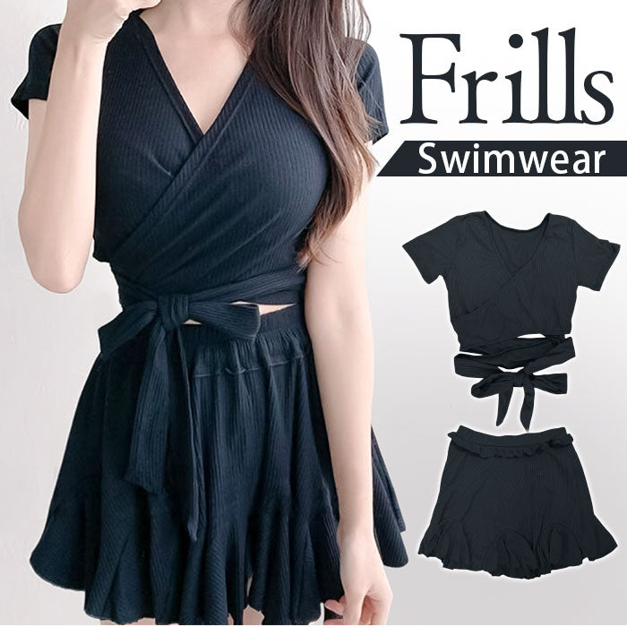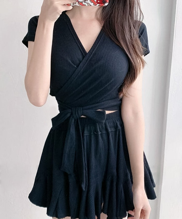 ・露出部分が少ないのでビキニが苦手な方にもトライしやすく、ガーリーさがありながらも品良くまとめるスイムウェア。
