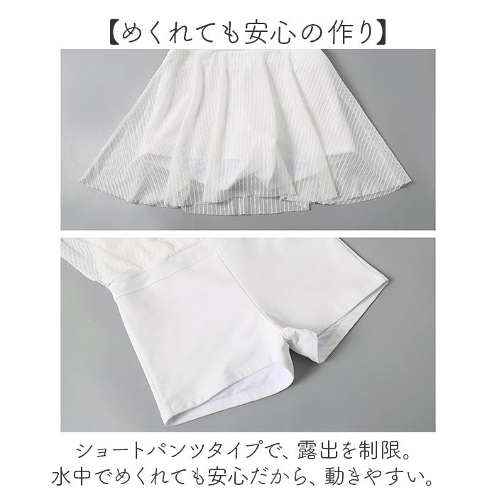 ・ショートパンツタイプで、露出を制限。水中でめくれても安心だから、動きやすい。