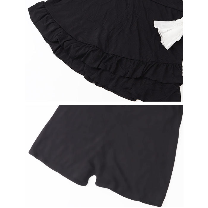 ・袖や胸元のフリルは程よい透け感と光沢感で涼し気かつ華やかな印象に。