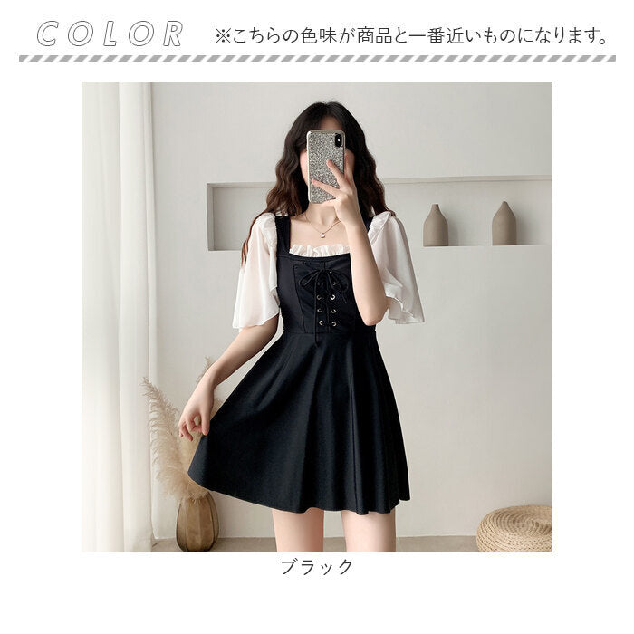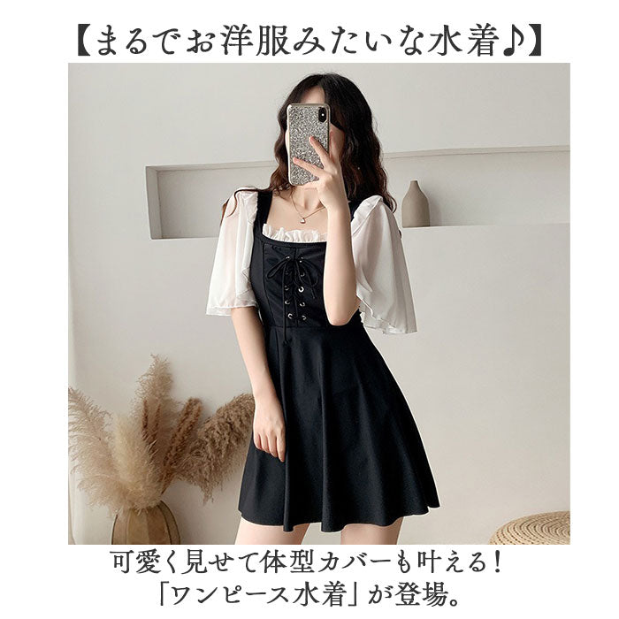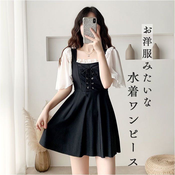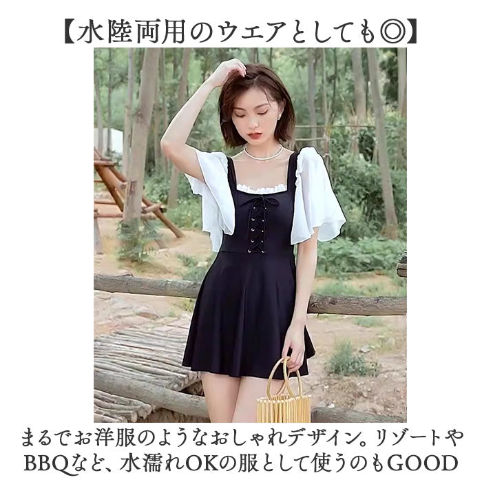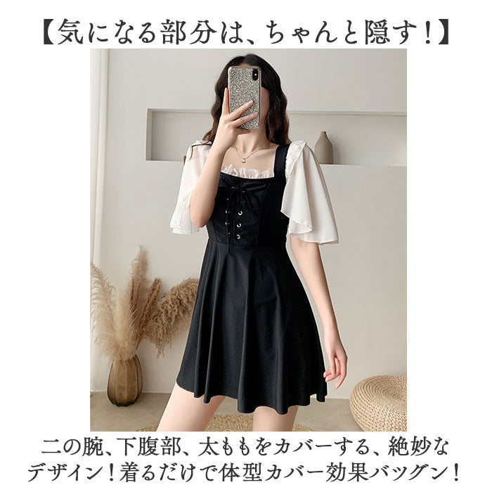 水着 ワンピース レディース 水陸両用 通販 スイムウェア ワンピース水着 半袖 フレアスカート 可愛い かわいい 体型カバー ゆったり セクシー 夏 プール 海 海水浴 おしゃれ 女性