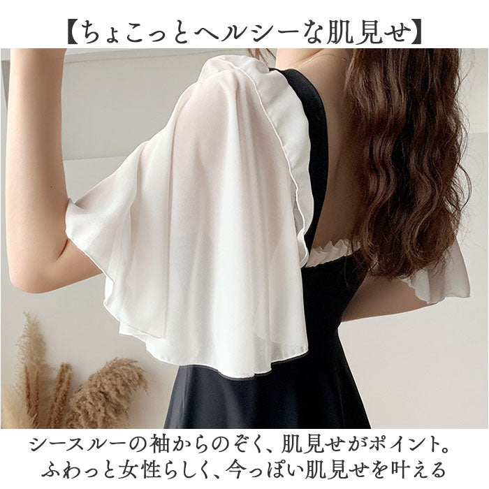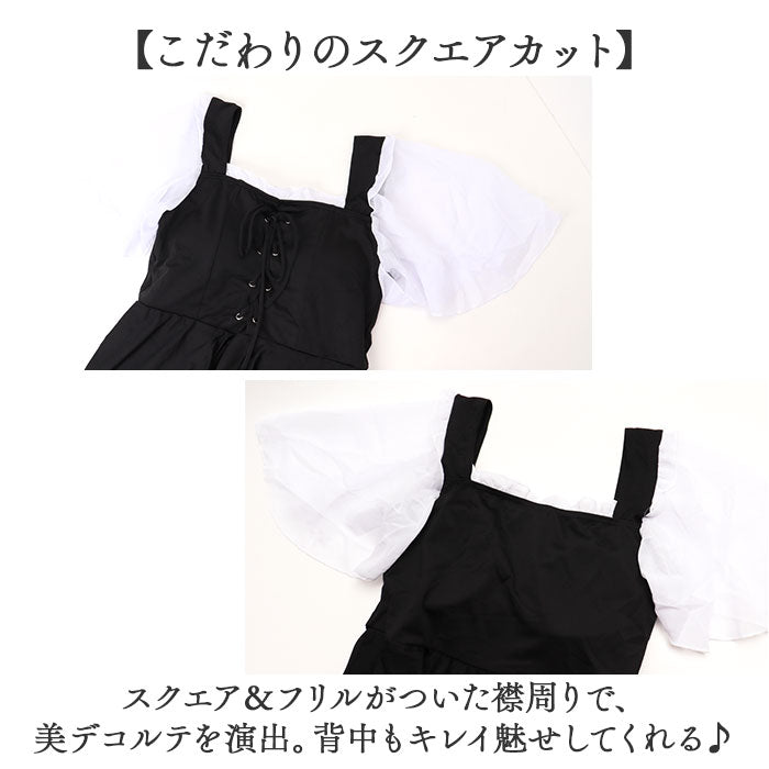 ・スクエア&フリルがついた襟周りで、美デコルテを演出。背中もキレイ魅せしてくれる♪