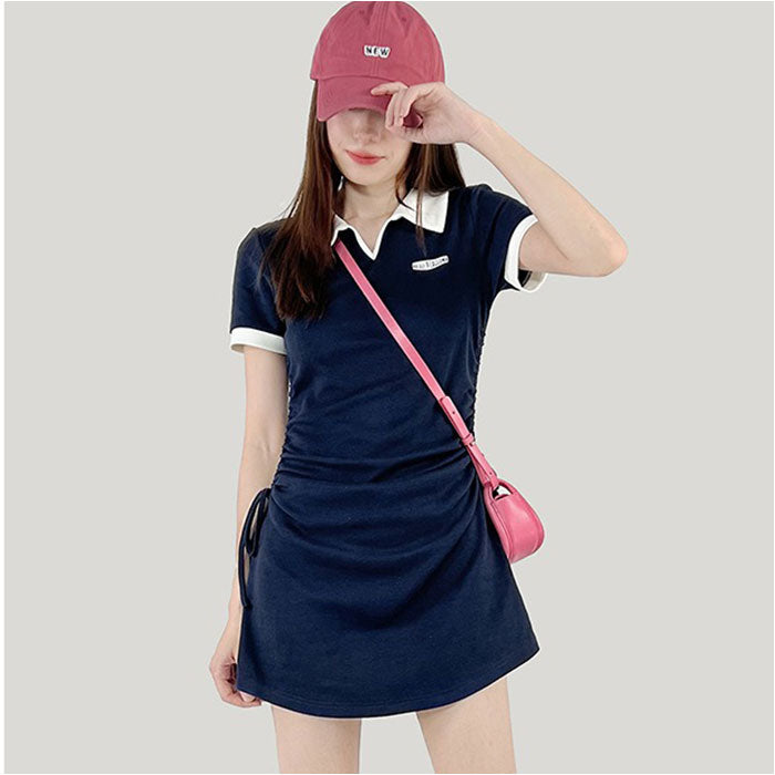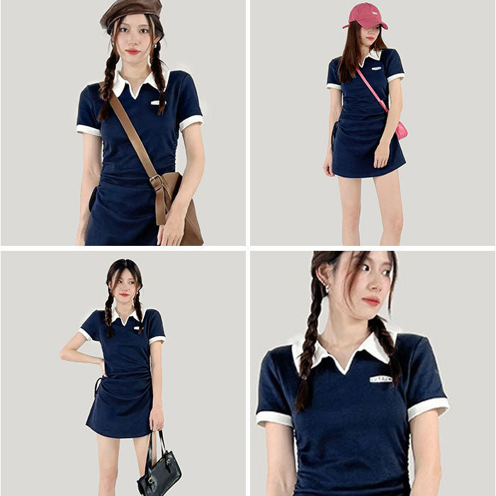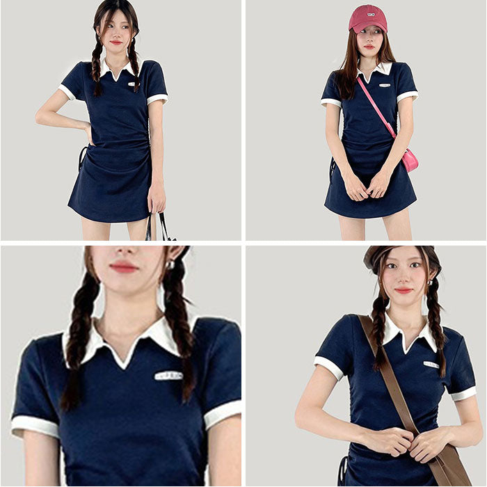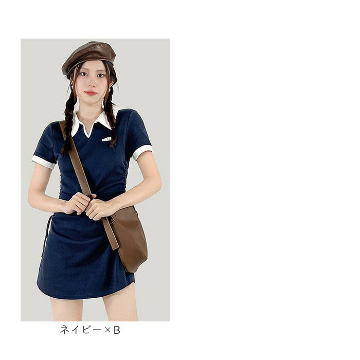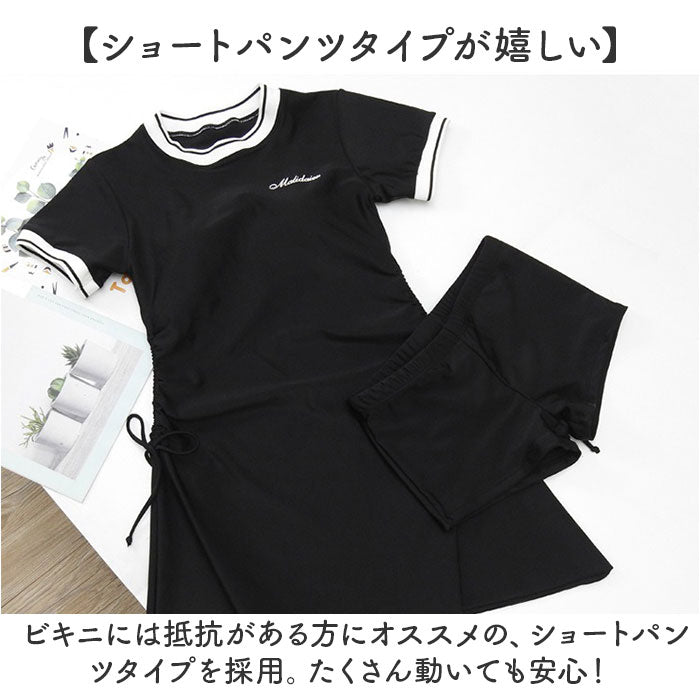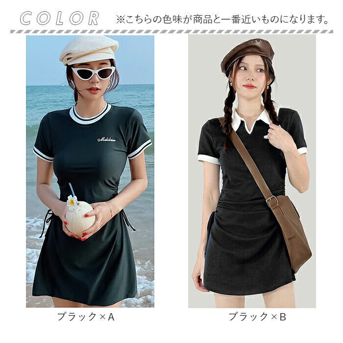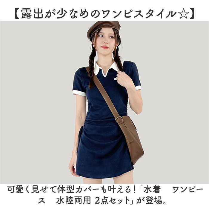 水着 ワンピース レディース 水陸両用 2点セット 通販 スイムウェア ワンピース水着 半袖 フィットネス 衿付き 襟付き 衿 襟 可愛い かわいい 体型カバー ゆったり シンプル 夏 プール 海