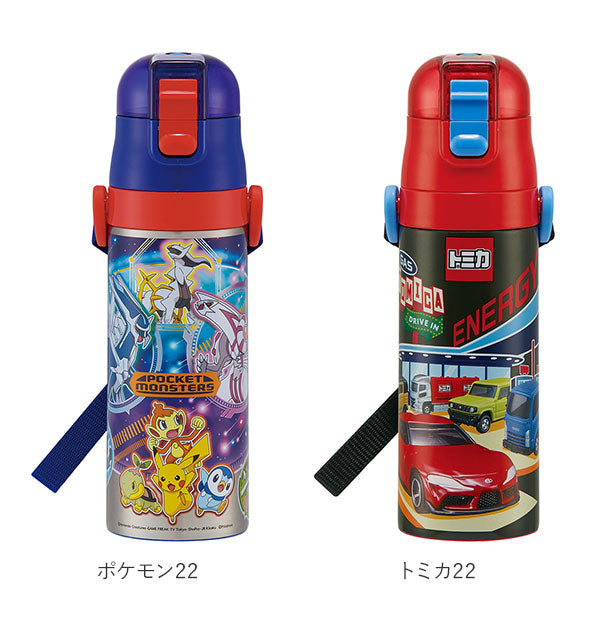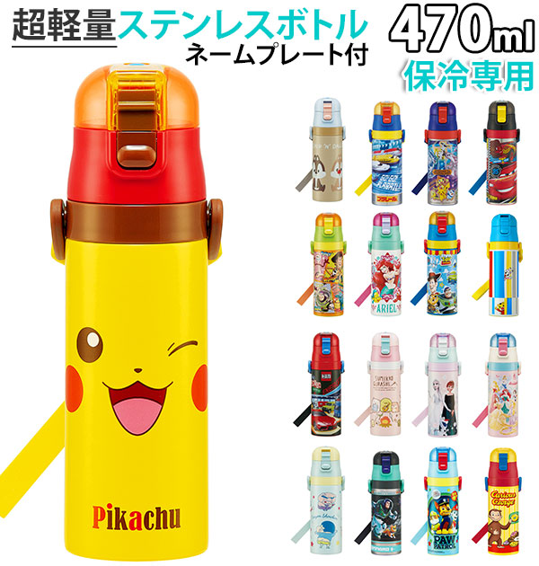 水筒 直飲み ステンレスボトル 470ml 通販 ジュニア 保冷専用 キャラクター マイボトル 超軽量 コンパクト ロック付 肩紐 しまじろう ポケモン ピカチュウ プラレール スケーター