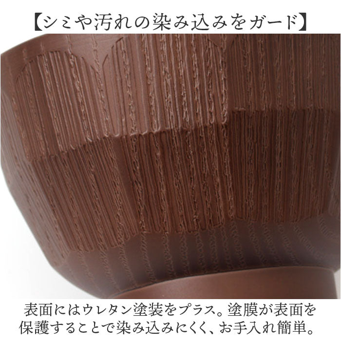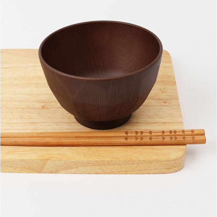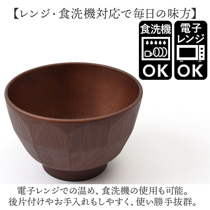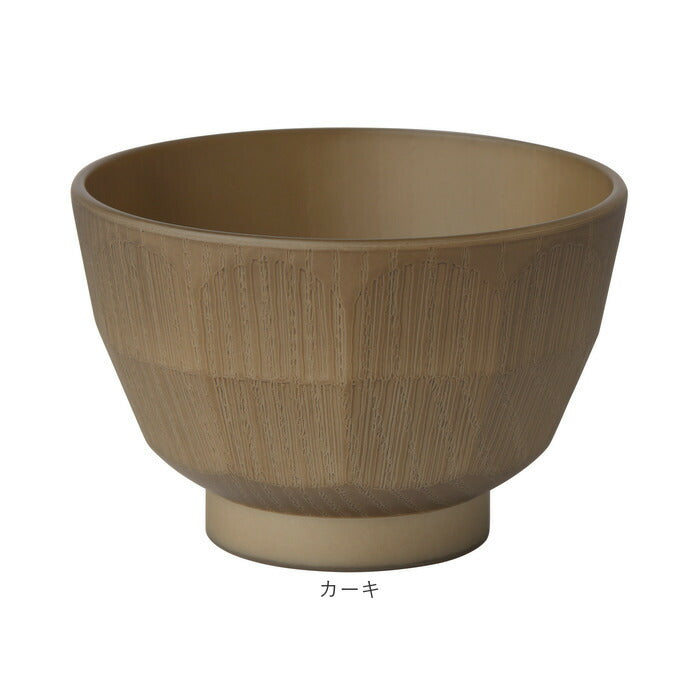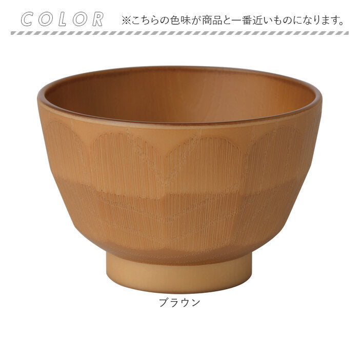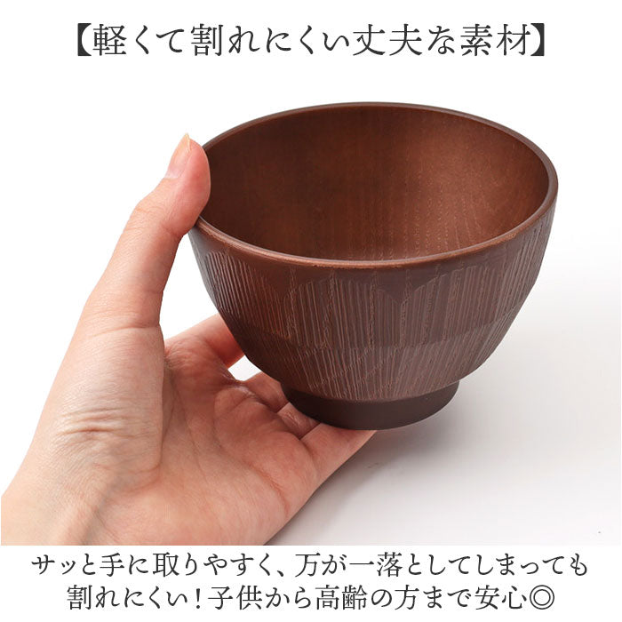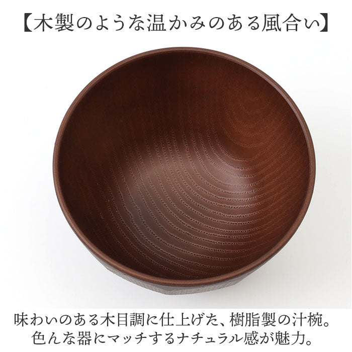 ・味わいのある木目調に仕上げた、樹脂製の汁椀。色んな器にマッチするナチュラル感が魅力。